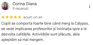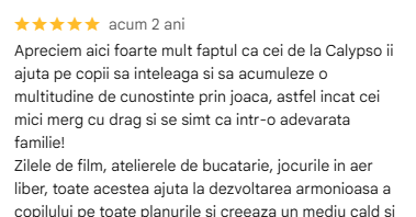 *Copiii pentru care nu se optează pentru excursia săptămânală de vineri vor participa la activități organizate la sediul Calypso Academy, cu program normal.